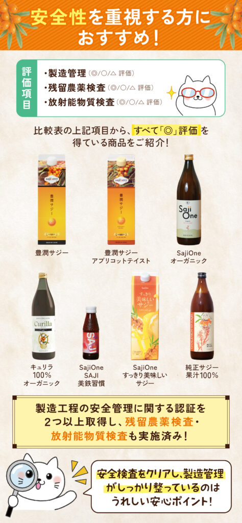 サジージュースを選ぶ際には、安全性も重要な要素です。