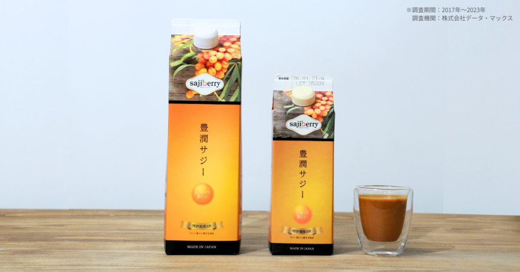 さらに、豊潤サジーは7年連続売上No1のサジージュースで、サジージュースブランドとして多くのお客様にご愛飲されています(※)。
