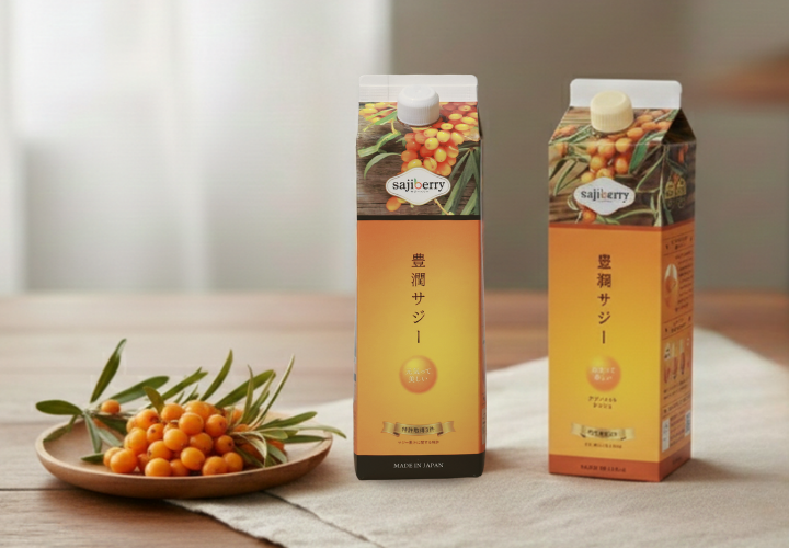 ネット通販や首都圏のスーパーで購入できるサジー果汁100%ジュース |