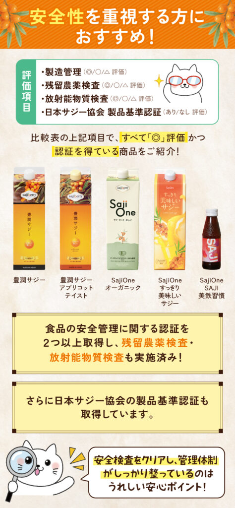 サジージュースを選ぶ際には、安全性も重要な要素です。