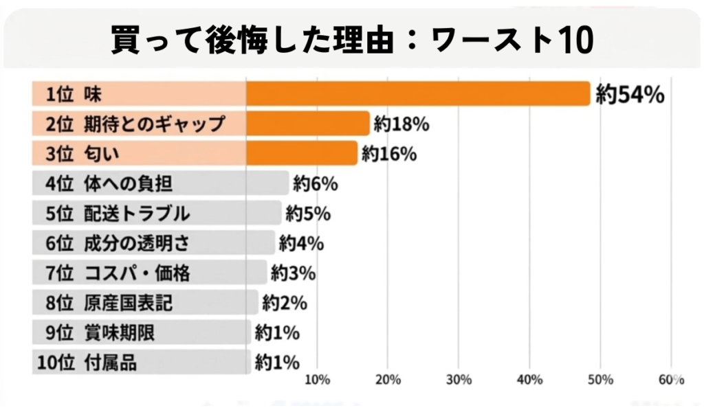 786件のレビューを分類した結果、最も多かった「買って後悔した理由」のワースト10です。